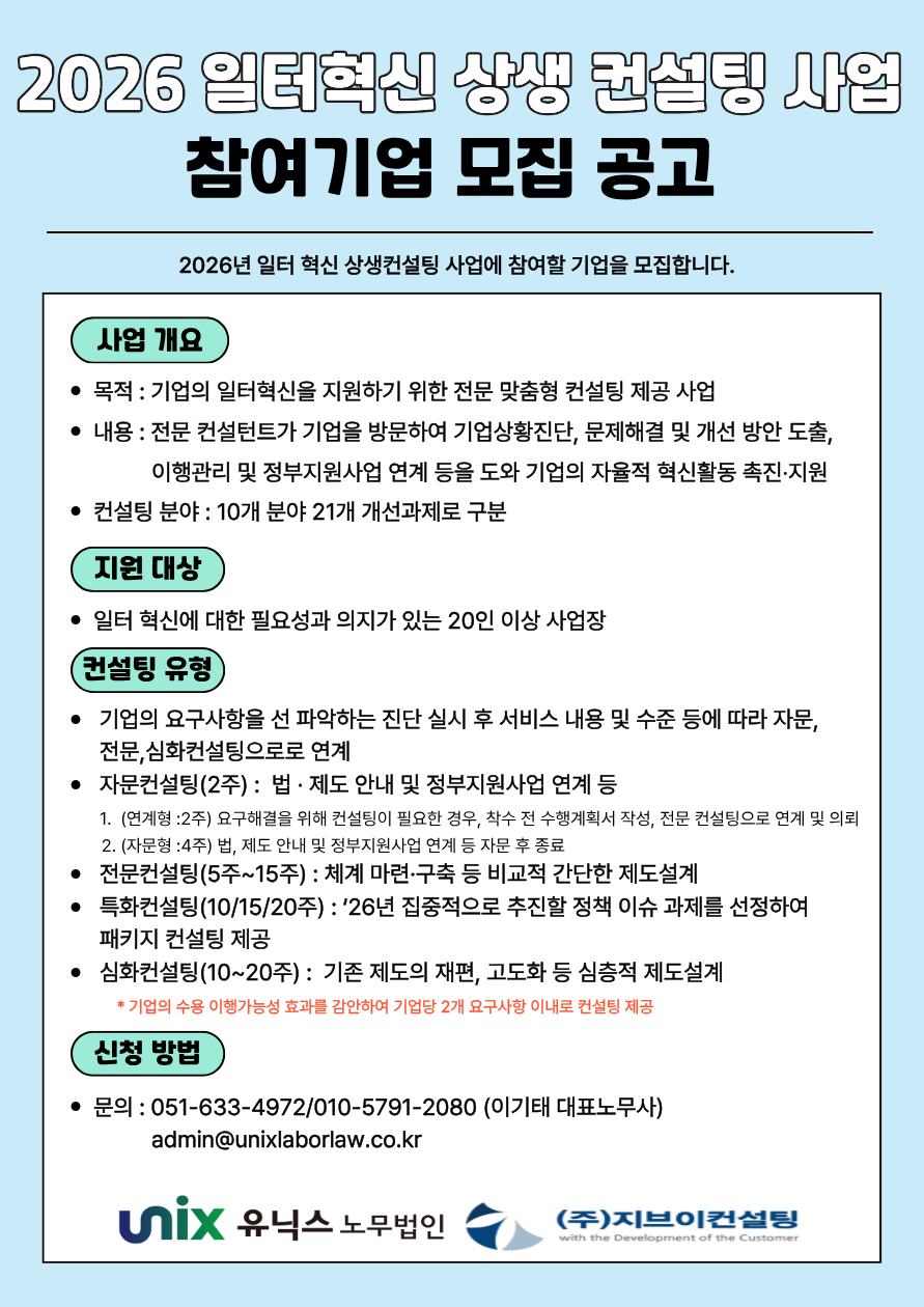 귀사와 귀하의 노동법률 문제 해결에 최선의 해결 방안을 제시해 드리고 있습니다.